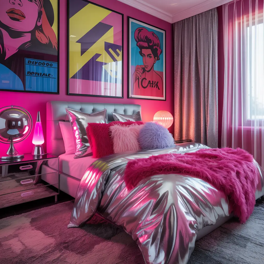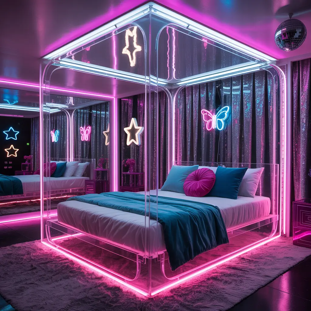 The 2000s said “why choose between glitter OR neon when you can have both?” This aesthetic is basically a rave that decided to stay home. I added glitter walls and neon accents to my office, and productivity is down but vibes are up.
