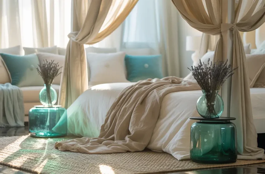The best part about this style? It makes even the smallest bedroom feel massive. All those reflective surfaces bounce light around like nobody’s business.