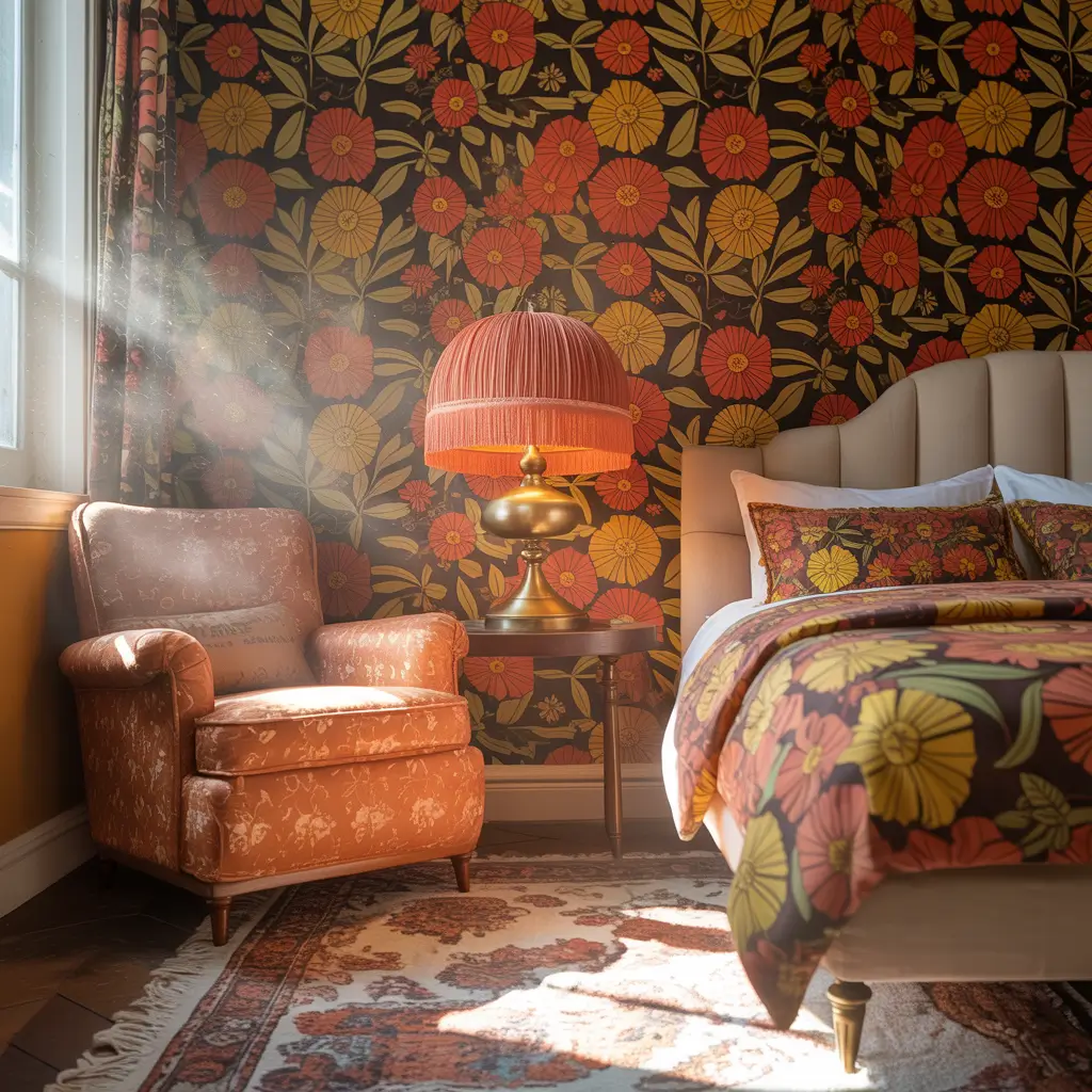 Remember those massive floral prints that covered every surface in the 70s? They’re back, baby, and they’re better than ever. Modern takes on 70s floral wallpaper give you all the nostalgia without the overwhelming busy-ness that made some vintage rooms feel claustrophobic.