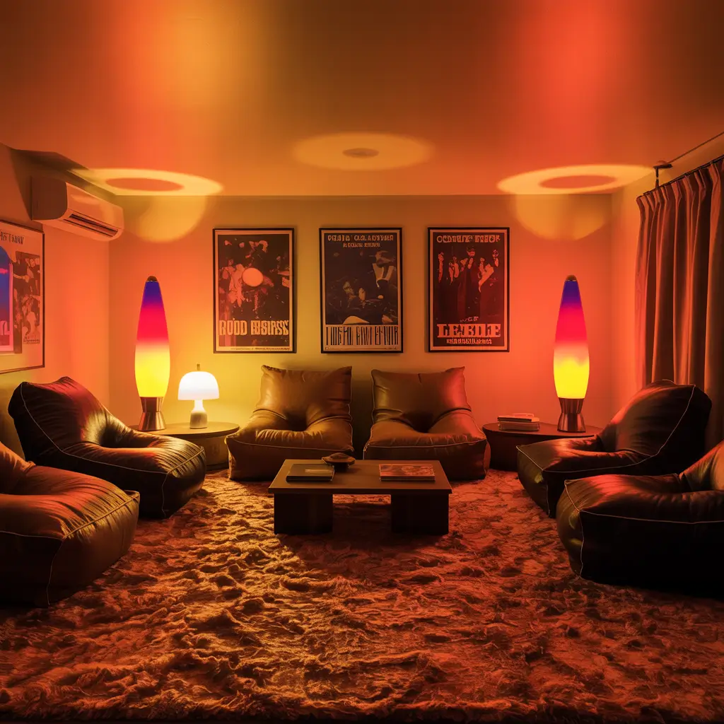 No 70s bedroom is complete without the hypnotic glow of a lava lamp. But we’re not just talking one lonely lamp on a nightstand – we’re creating an entire mood lighting setup that would make any 70s teenager jealous.