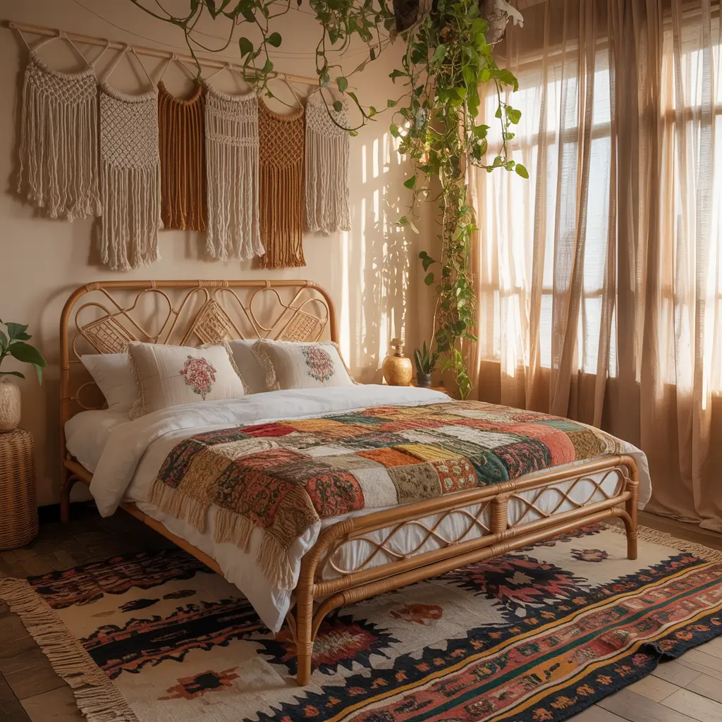 Start with a warm color palette – think terracotta, mustard, and olive green. Layer in vintage textiles, macramé wall hangings, and plenty of plants. I transformed my bedroom with a vintage Moroccan rug, rattan headboard, and carefully chosen boho accessories.