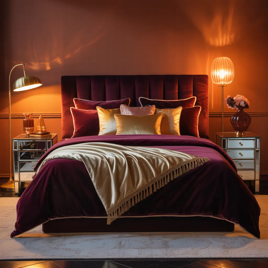 Start with a velvet headboard in a rich color like emerald green or deep purple. Add velvet throw pillows and perhaps a velvet accent chair. I chose a deep gold velvet headboard that catches light beautifully.