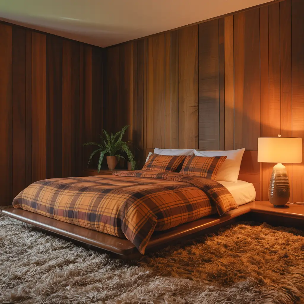 Choose warm-toned wood or stain existing paneling in a rich color. Add contrast through white bedding and metallic accents. My favorite trick? Install paneling horizontally for a modern twist on this 70s staple.