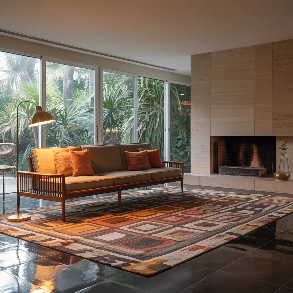 The 70s-meets-mid-century look creates perfect balance between clean lines and groovy vibes. This combination prevents your space from feeling like a time capsule.