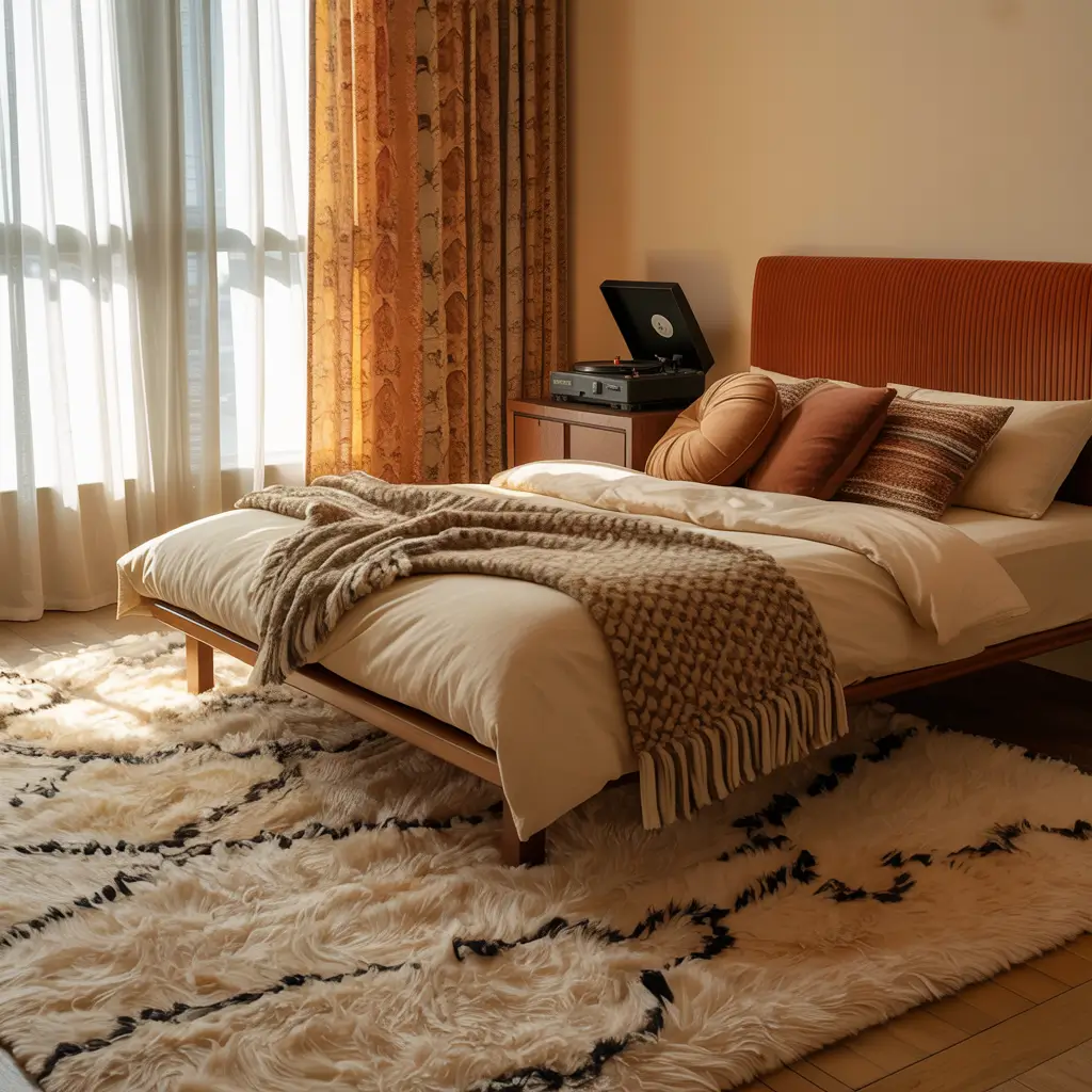 shag rug instantly transports your space back to the 70s. But modern versions offer better quality and easier maintenance (thank goodness). My bedroom’s cream shag rug adds texture and comfort without shedding everywhere.