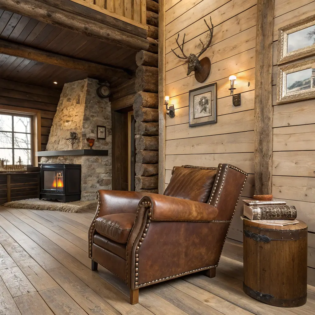 Start with warm wood tones everywhere—floors, furniture, even some wall paneling if you’re feeling ambitious. Add plaid patterns (but sparingly, we’re not lumberjacks), leather accents, and maybe a faux fur throw that screams “I could survive in the wilderness but choose not to.”