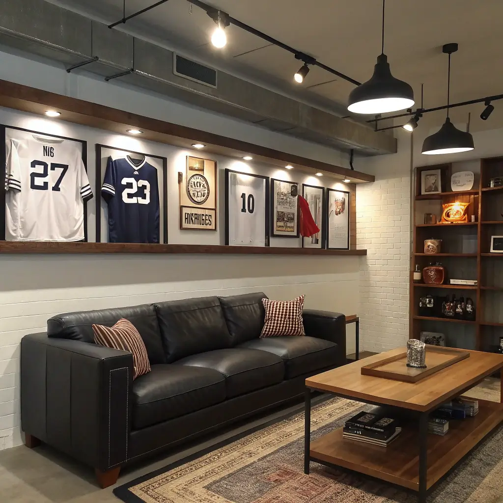 Display memorabilia in shadow boxes or sleek frames. Use team colors as accent pieces, not the entire color scheme. That signed jersey? Frame it properly instead of thumbtacking it to the wall like a savage.