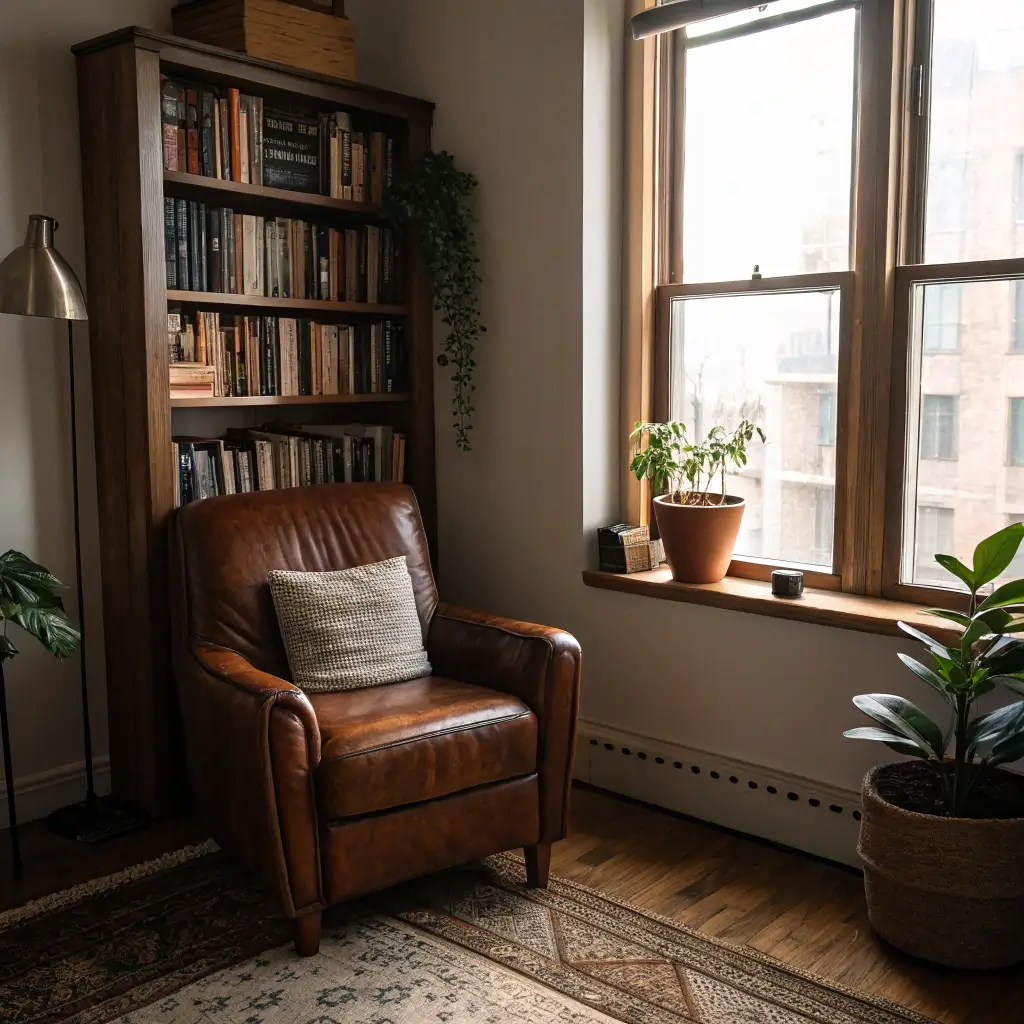 Pick the best corner with natural light. Add a quality leather chair (this isn’t where you cheap out), a small side table for your whiskey—I mean, coffee—and good task lighting. Floor-to-ceiling bookshelves if you can swing it, floating shelves if you can’t.