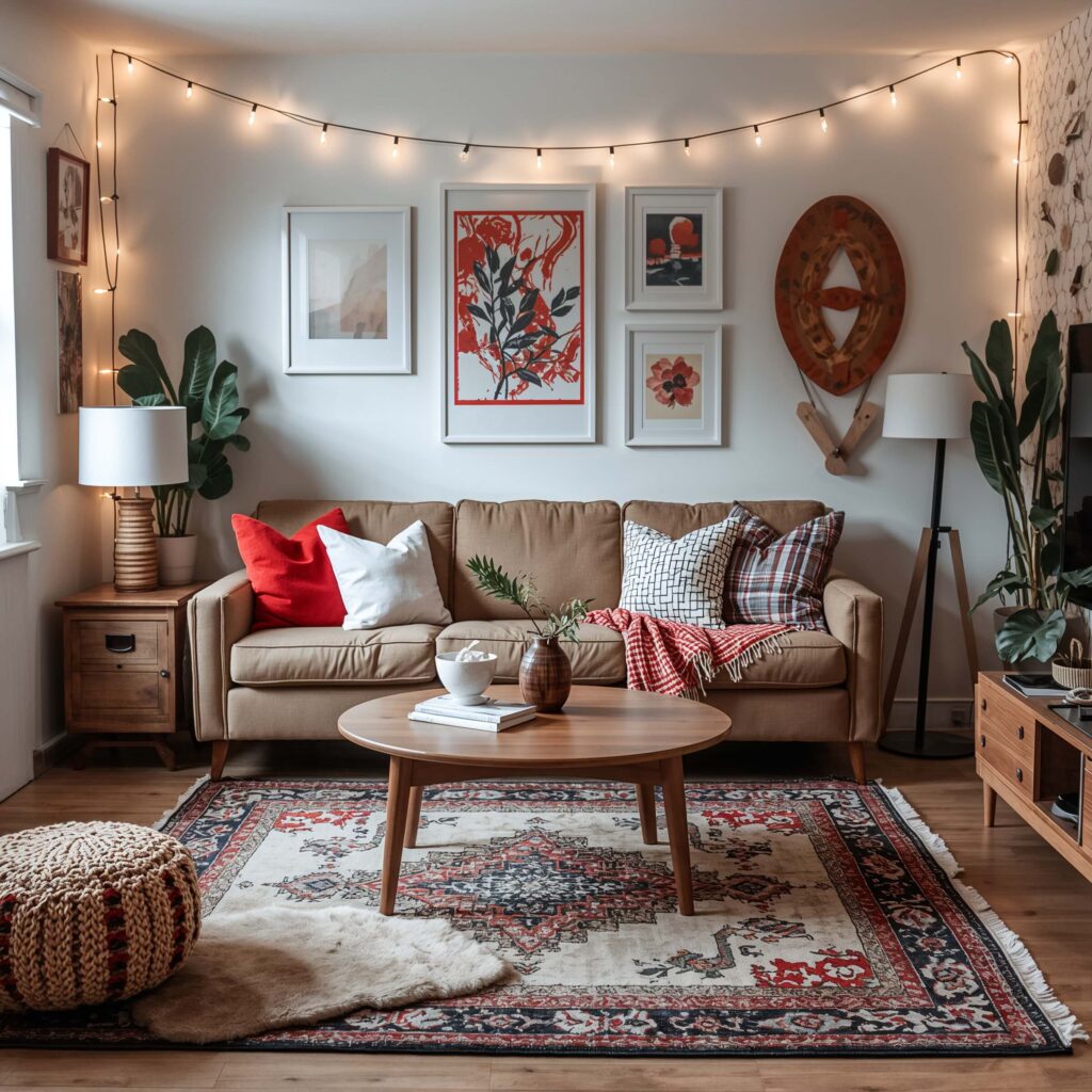 - Layer lighting with floor lamps, table lamps, and string lights (apartment overhead lighting is notoriously awful)