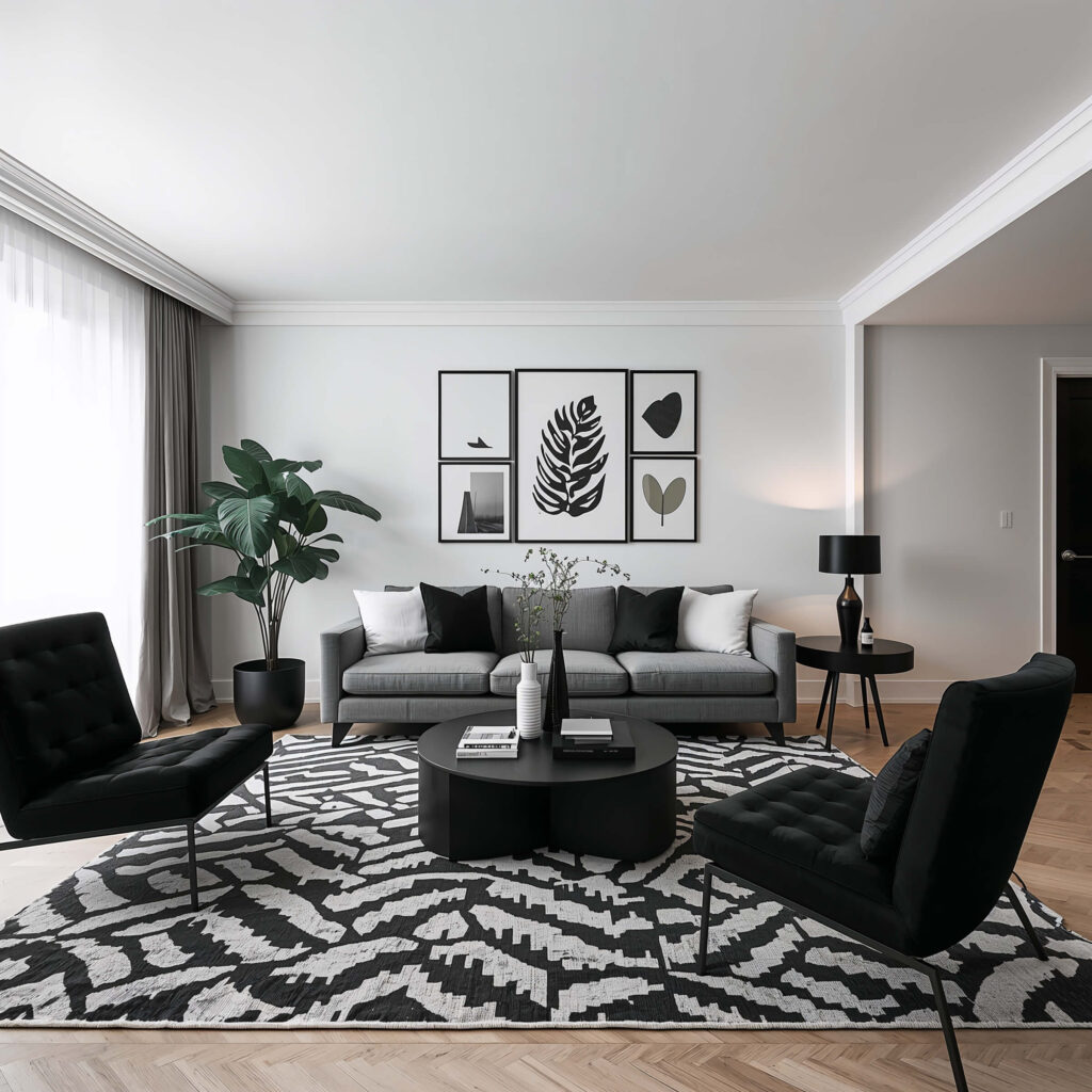 Here’s something that might surprise you – black and white isn’t boring; it’s classic. Like a little black dress for your living room, this color scheme never goes out of style.