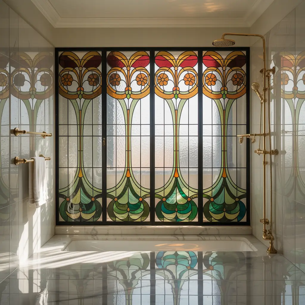 Nothing says Art Nouveau quite like stained glass, and incorporating it into your shower creates an absolutely magical bathing experience.