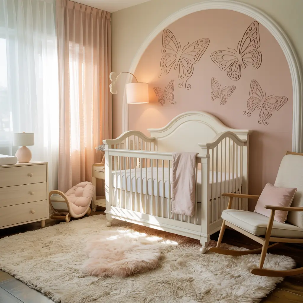 The accent wall is where you make your statement. You’ve got options here – butterfly decals, hand-painted butterflies, or even 3D paper butterflies. I went the 3D route with my niece’s nursery, and let me tell you, cutting out 50 paper butterflies seemed like a good idea until about butterfly number 15.