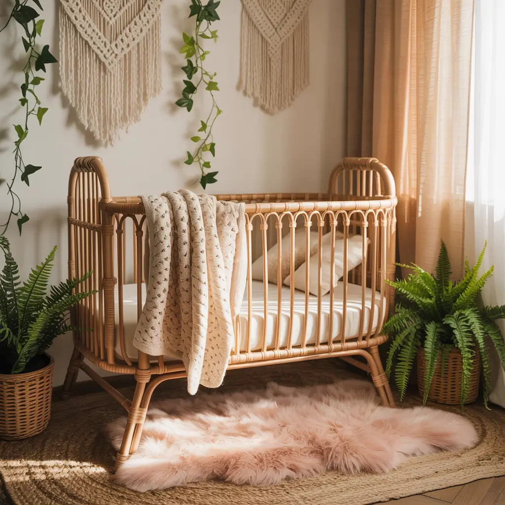 The key to modern boho versus regular boho? Clean lines mixed with organic elements. Think geometric patterns alongside macramé, or a super modern crib paired with a vintage Moroccan rug. It’s all about that unexpected mix.