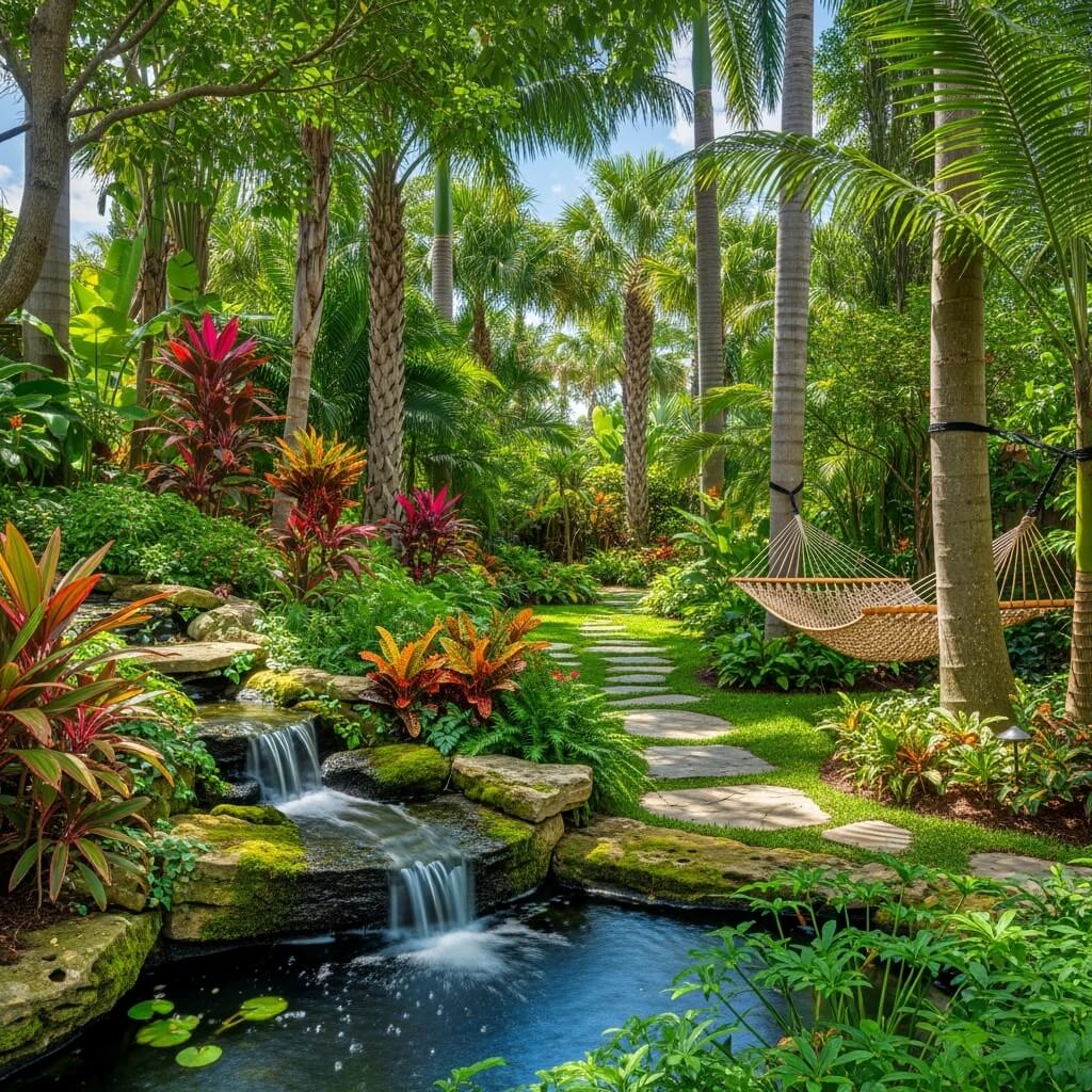Tropical gardens engage you physically. You should feel slightly enclosed, like the plants are welcoming you into a secret space. Paths wind rather than running straight. You discover areas gradually rather than seeing everything at once.