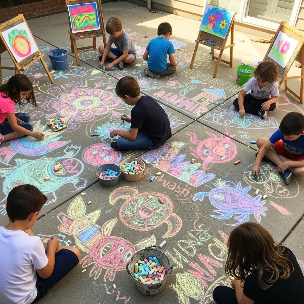 - Host chalk art competitions with silly categories (best alien, funniest face, most colorful rainbow)