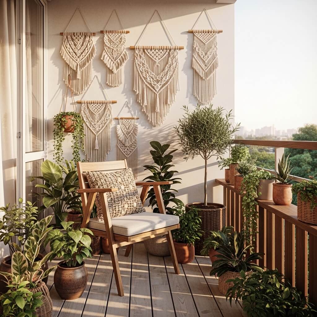 Boho macrame hangings are having a major moment, and for good reason. They add texture, warmth, and that effortlessly cool vibe that makes your balcony look like you actually know what you’re doing with decor. The best part? You can find gorgeous pieces at thrift stores, craft markets, or online for next to nothing.