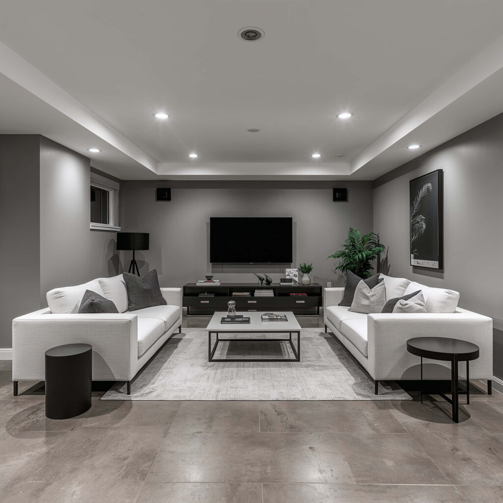 Modern Gray and White Basement Ideas