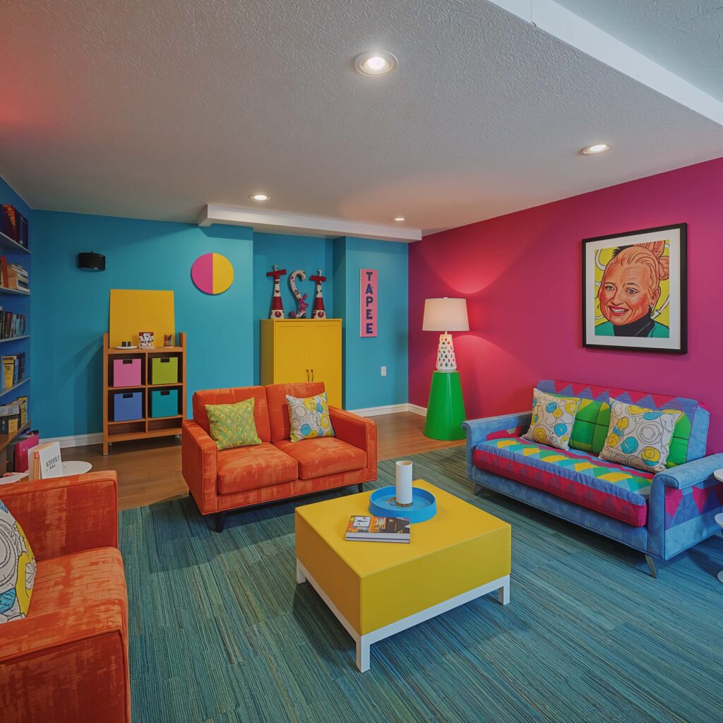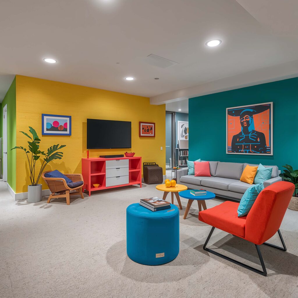 Vibrant Color Pops for Basement Walls