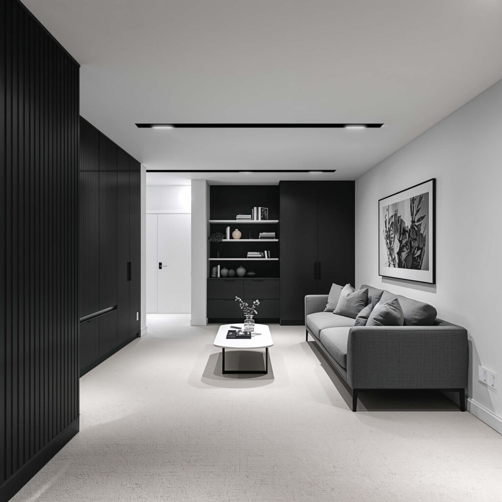 Minimalist Monochrome Basement Designs