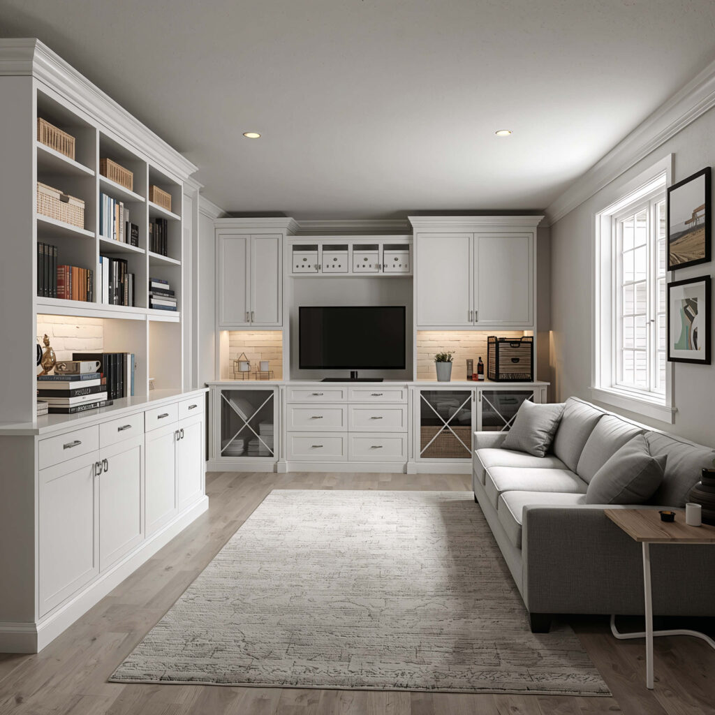 Here’s the reality – most of us need our basements to do double duty. You want style AND storage. The good news? Multi-functional design means you can have both without compromise.