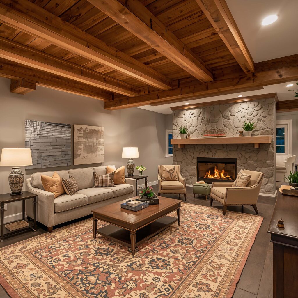 Want something with more character than typical basement finishes? Rustic chic brings warmth and personality to underground spaces. This style embraces natural materials and cozy textures, perfect for creating an inviting retreat.
