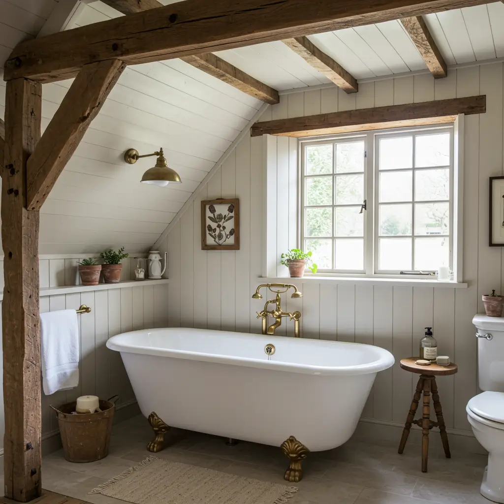 The key to industrial style is balance. Too much metal and your bathroom feels cold. I warmed mine up with: