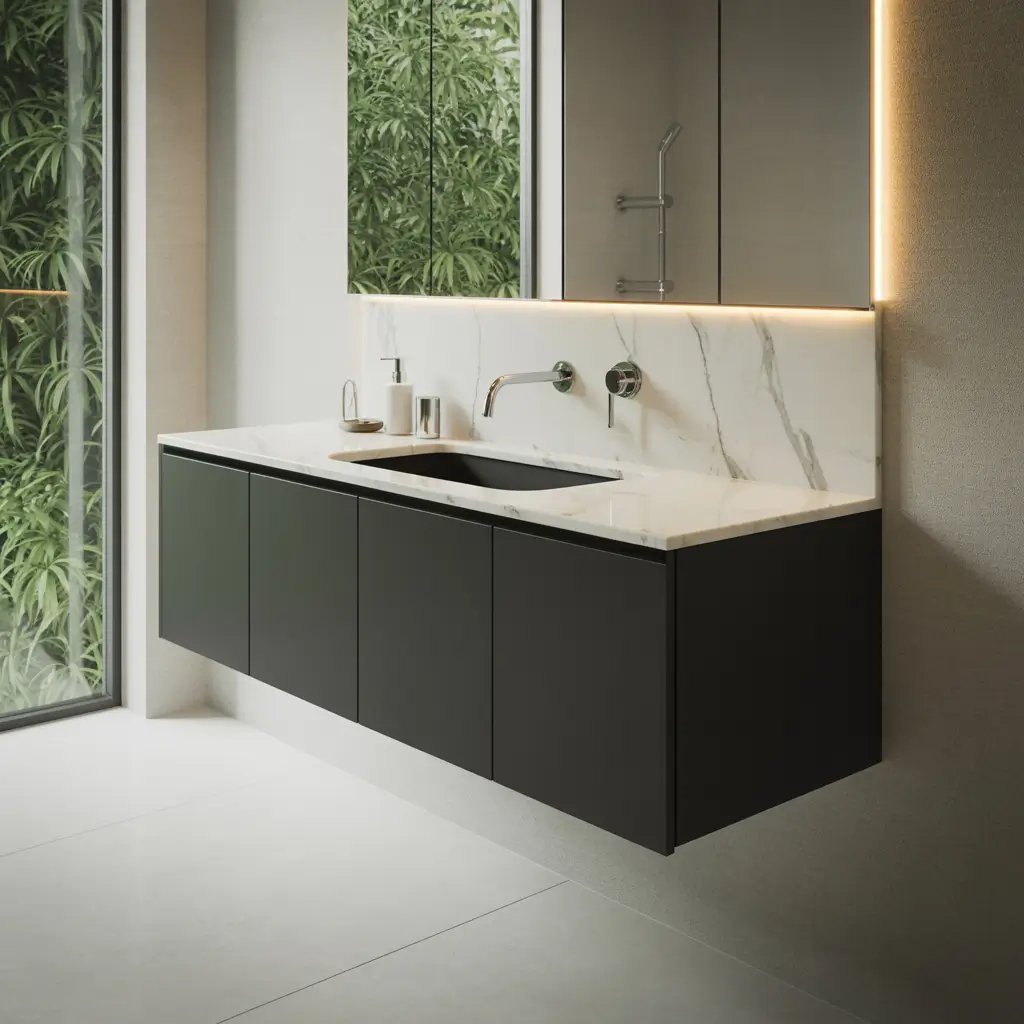 Floating basin cabinets are having their moment, and honestly, I totally get why. I installed my first floating cabinet two years ago, and walking into that bathroom still makes me feel like I’m in a fancy hotel. There’s something about that gap between the cabinet and floor that makes even my tiny bathroom feel twice as spacious.