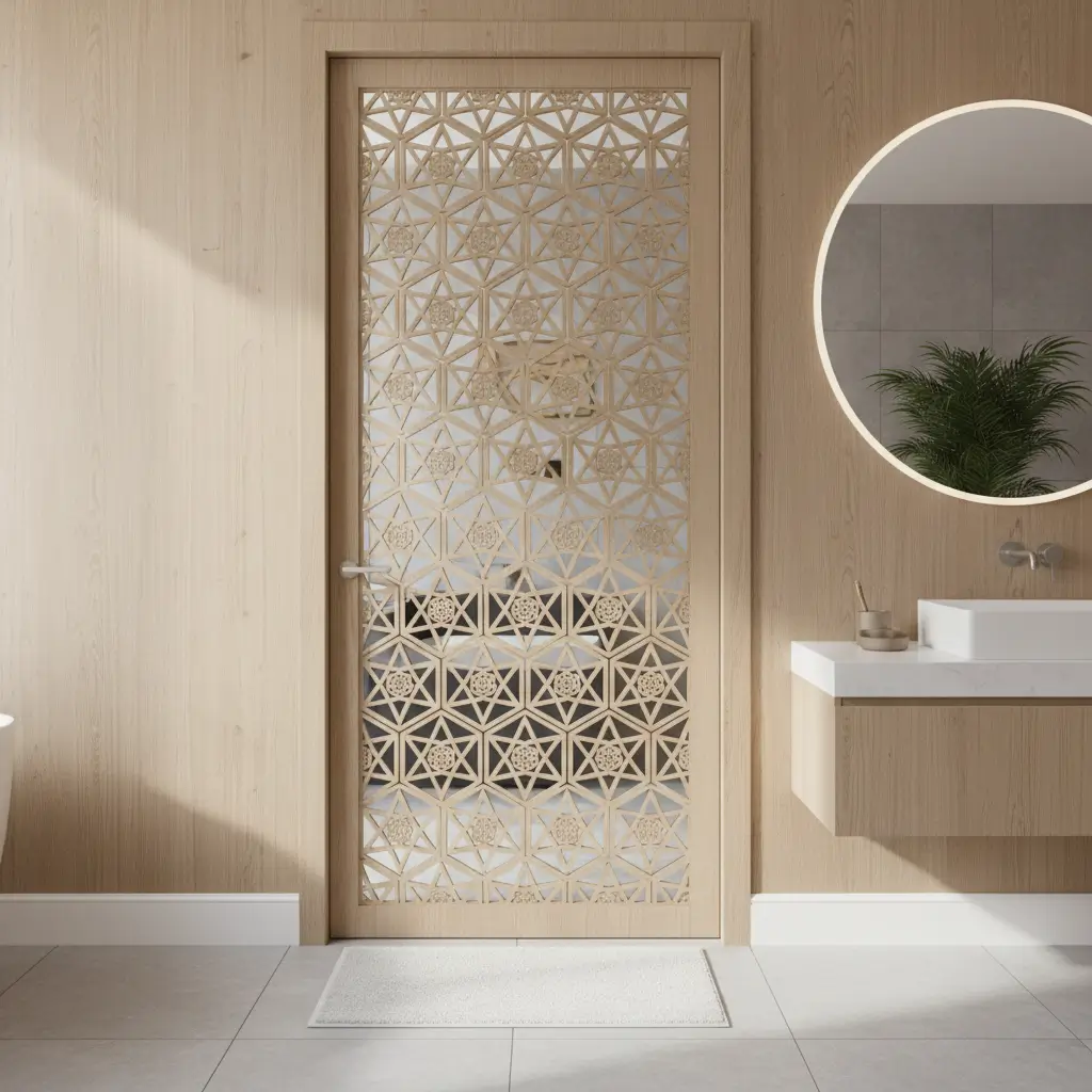 Decorative laser-cut pattern doors turn functional necessities into artistic statements. These precision-crafted beauties prove that bathroom doors can be conversation pieces rather than afterthoughts.