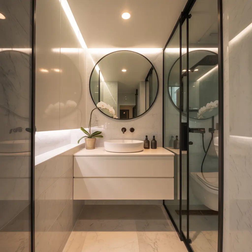 Here’s a truth bomb: lighting makes or breaks your bathroom design. You could have marble everything and gold fixtures, but bad lighting will kill the whole vibe faster than you can say “fluorescent.”