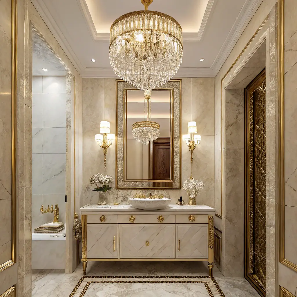 Okay, hear me out—a small crystal chandelier above your bathroom mirror is the ultimate unexpected luxury. It’s fancy, it’s dramatic, and it makes every bathroom visit feel like an occasion.