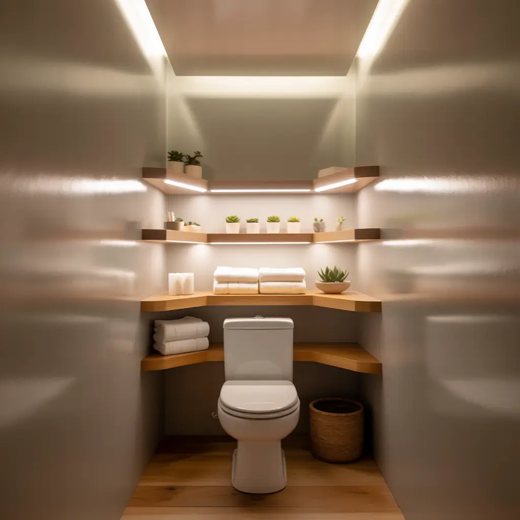 Got a toilet tucked in a corner? Corner wrap-around shelves use every inch of that awkward space. They literally hug the corner, giving you storage on two walls without feeling intrusive.
