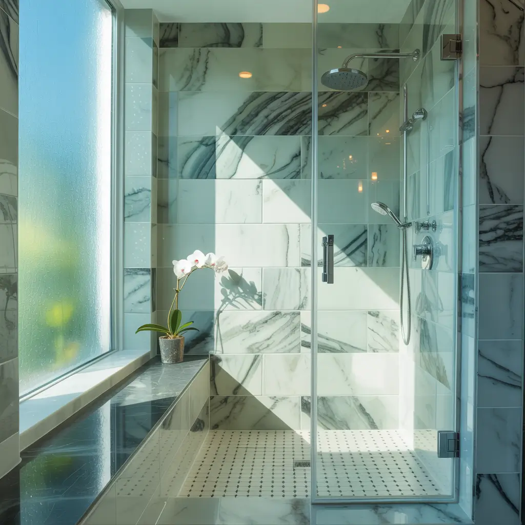 Here’s what nobody tells you about marble-look tiles: vein matching matters. Take time to lay out your tiles before installation to ensure the veining flows naturally. Random placement can make your shower look like a marble jigsaw puzzle gone wrong.