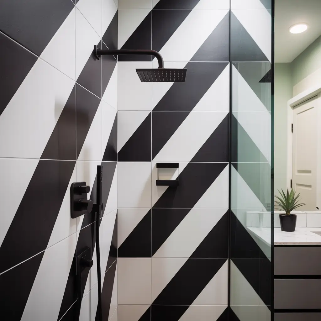 Black and White Contrast Shower Tiles