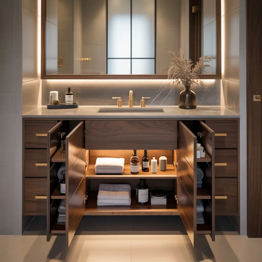 Whether you start with simple shelves above the toilet or go full-organization with hidden vanity compartments, the key is choosing solutions that fit your space and habits.