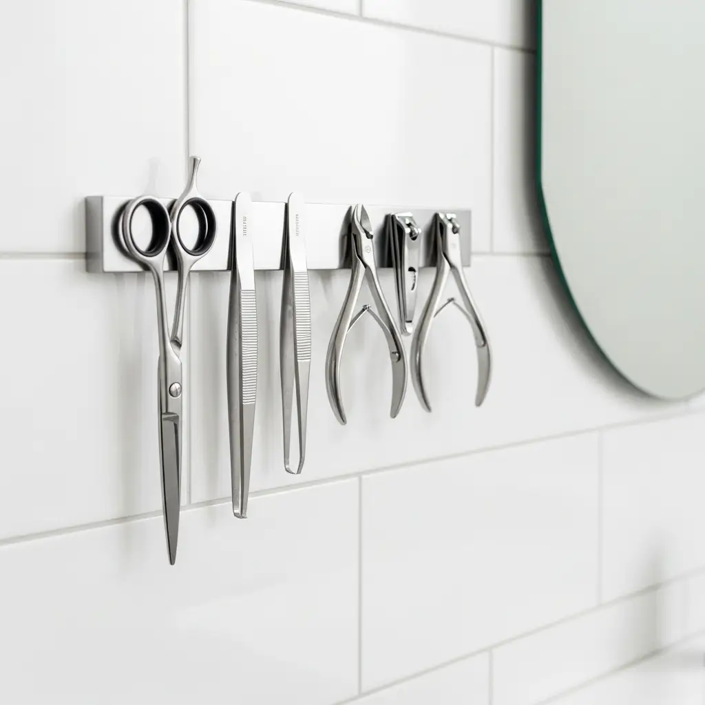 I installed one inside my medicine cabinet door, and now my tweezers, nail clippers, and bobby pins have a permanent home. No more digging through drawers or buying the fifth pair of tweezers because you can’t find any. FYI, this has saved my morning routine more times than I can count.