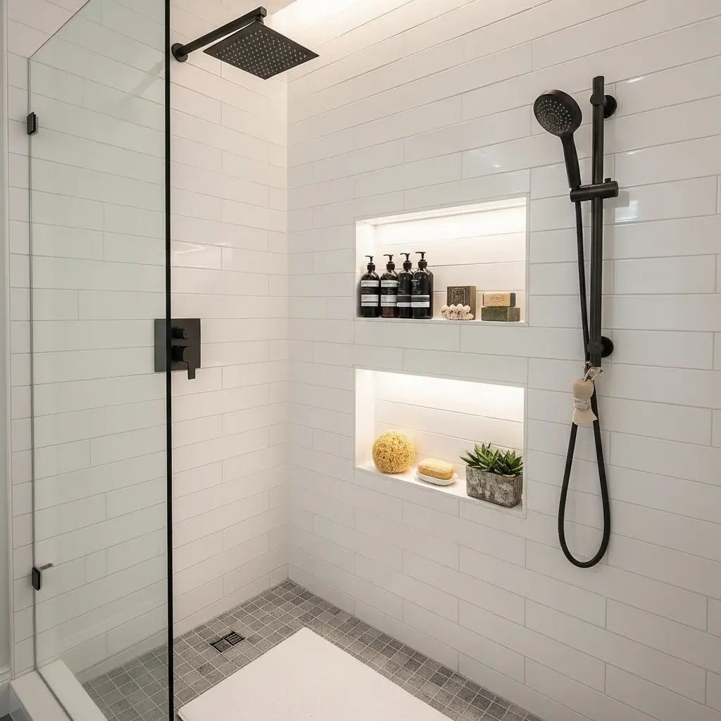 During my bathroom reno, I added two niches in the shower. One holds bottles, the other has soap and smaller items. No more shower floor bottle obstacle courses! The clean, built-in look makes the whole bathroom feel more upscale.