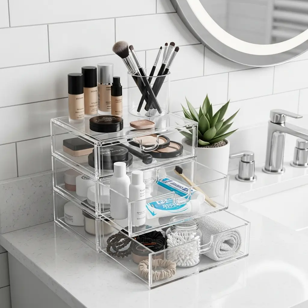 For the organization enthusiasts (you know who you are), clear acrylic drawers offer visible storage that actually looks good.