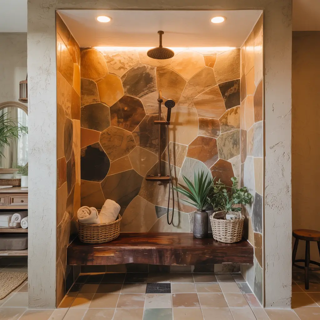 Sometimes you just want your bathroom to feel grounded and calm. Enter natural stone tiles. Whether it’s slate, travertine, or limestone, these tiles bring the outside in and create an instant spa atmosphere.