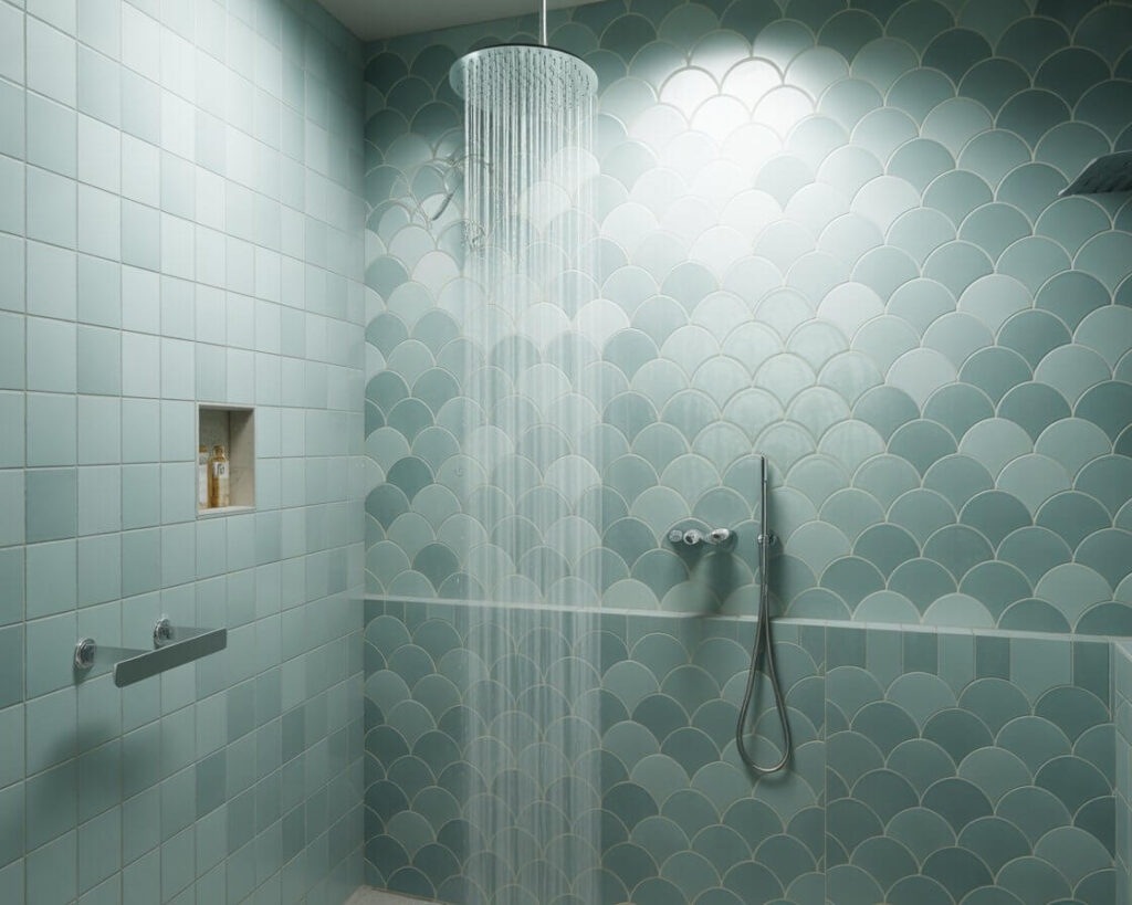 Also called scallop or fan tiles, these beauties bring instant whimsy to any bathroom. Fish scale tiles create this gorgeous overlapping pattern reminiscent of mermaid tails or art deco glamour. They’re basically the bathroom equivalent of a sequined dress.