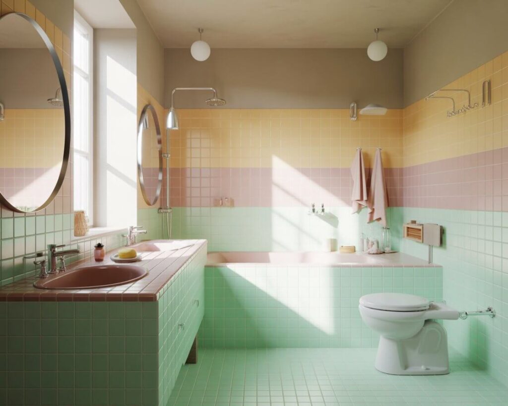 Who decided bathrooms should be neutral? Pastel tiles bring joy and personality without overwhelming. Think soft mint, dusty pink, butter yellow – colors that whisper rather than shout.