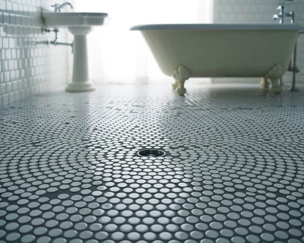 I covered my shower floor with white penny rounds, and besides looking adorable, they’re surprisingly practical. All those grout lines provide excellent slip resistance – crucial for wet areas. The circular shape also means no sharp corners to stub your toes on (you’re welcome).