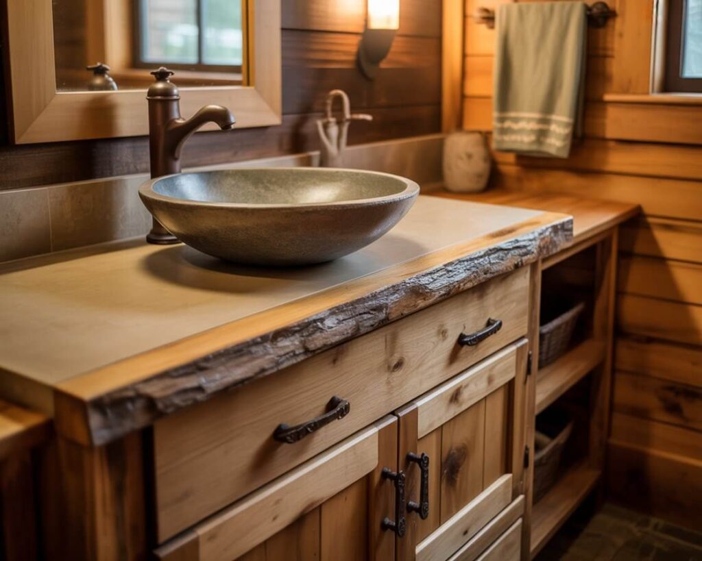 The beauty of rustic vanities? They hide wear and tear like champions. Water rings, scratches, dings – they all just add to the character. Plus, the warmth of natural wood makes even the coldest bathroom feel inviting.