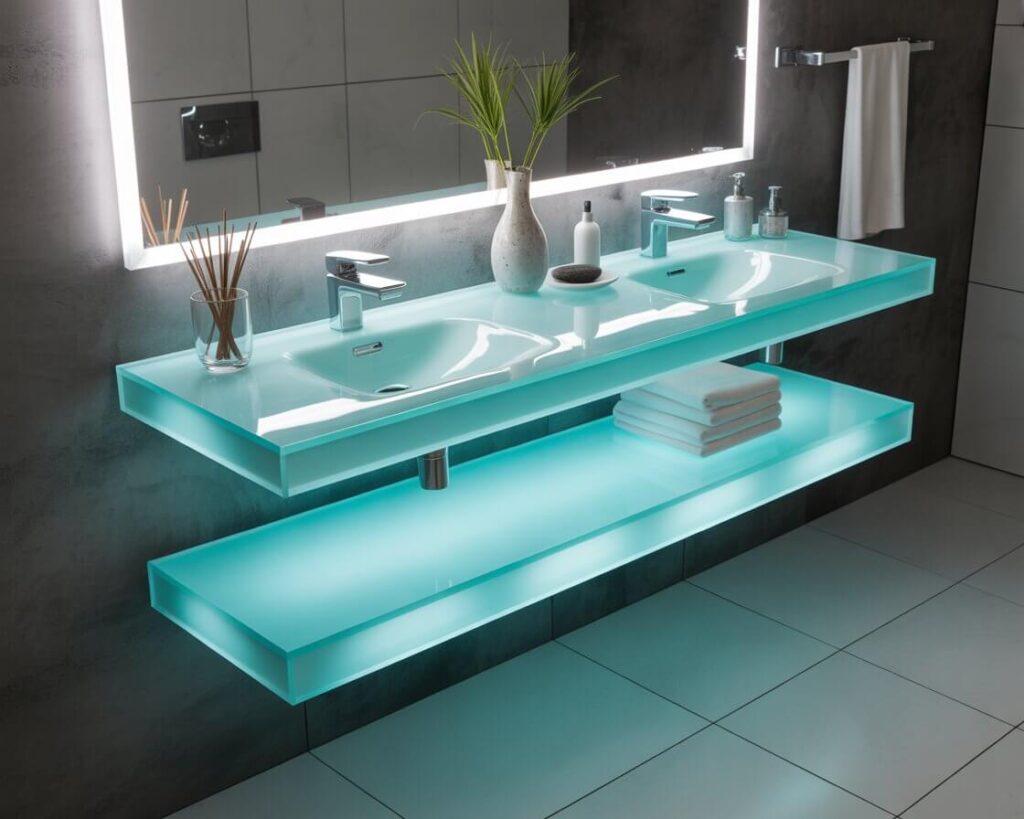 I saw one in a showroom made from tempered glass with LED backlighting, and it literally looked like it was from a sci-fi movie. The transparency keeps everything feeling open and airy.