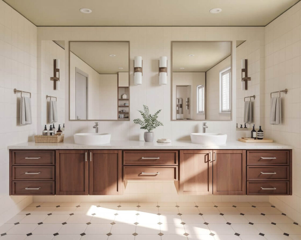 Remember those morning battles over sink space with your partner? Yeah, a double sink vanity solves that drama real quick. I switched to one three years ago, and our morning routine went from chaos to… well, slightly organized chaos, but that’s progress!