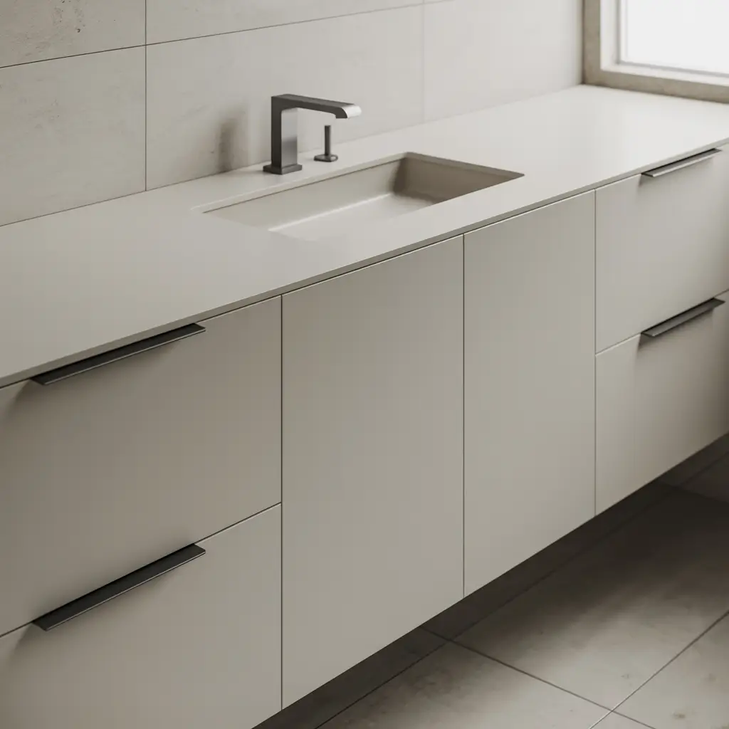 Modern minimalist makeovers strip away everything unnecessary, leaving clean lines and functional beauty. This approach works particularly well on builder-grade vanities with simple profiles that just need refinement.