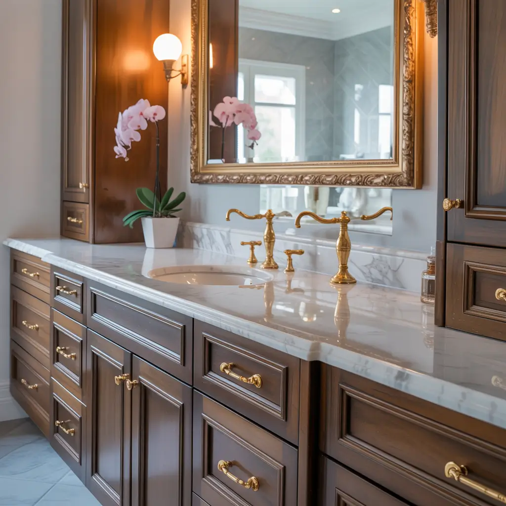 Marble upgrades work best when your cabinet structure is solid but the top is dated or damaged. You’re essentially giving your vanity a luxury hat that makes everyone forget about the budget body underneath.