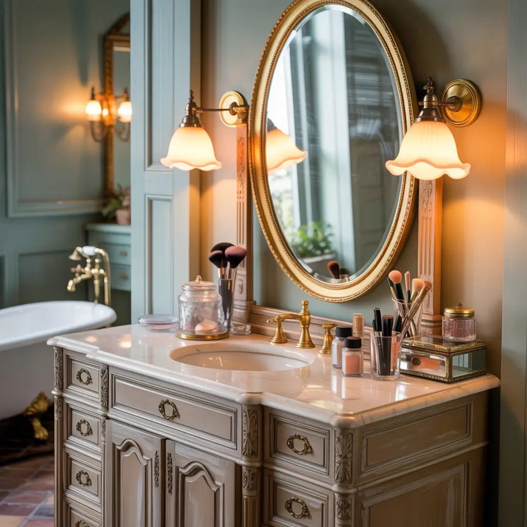 The trick is finding or creating a vanity that captures vintage charm without sacrificing functionality. Think curved edges, decorative details, and that perfect little corner where you can sit and take your time with your routine.