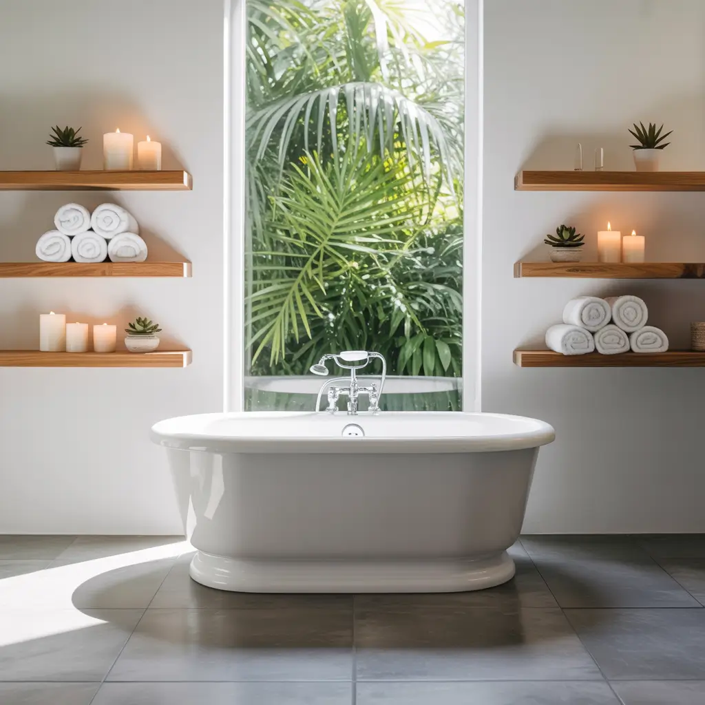I installed three white oak floating shelves in my bathroom last year, and honestly, I wonder how I ever lived without them. They hold everything from my fancy skincare bottles to those cute little succulent plants that somehow survive the humidity. The key here is keeping things minimal – nobody wants to see your collection of half-empty shampoo bottles on display.