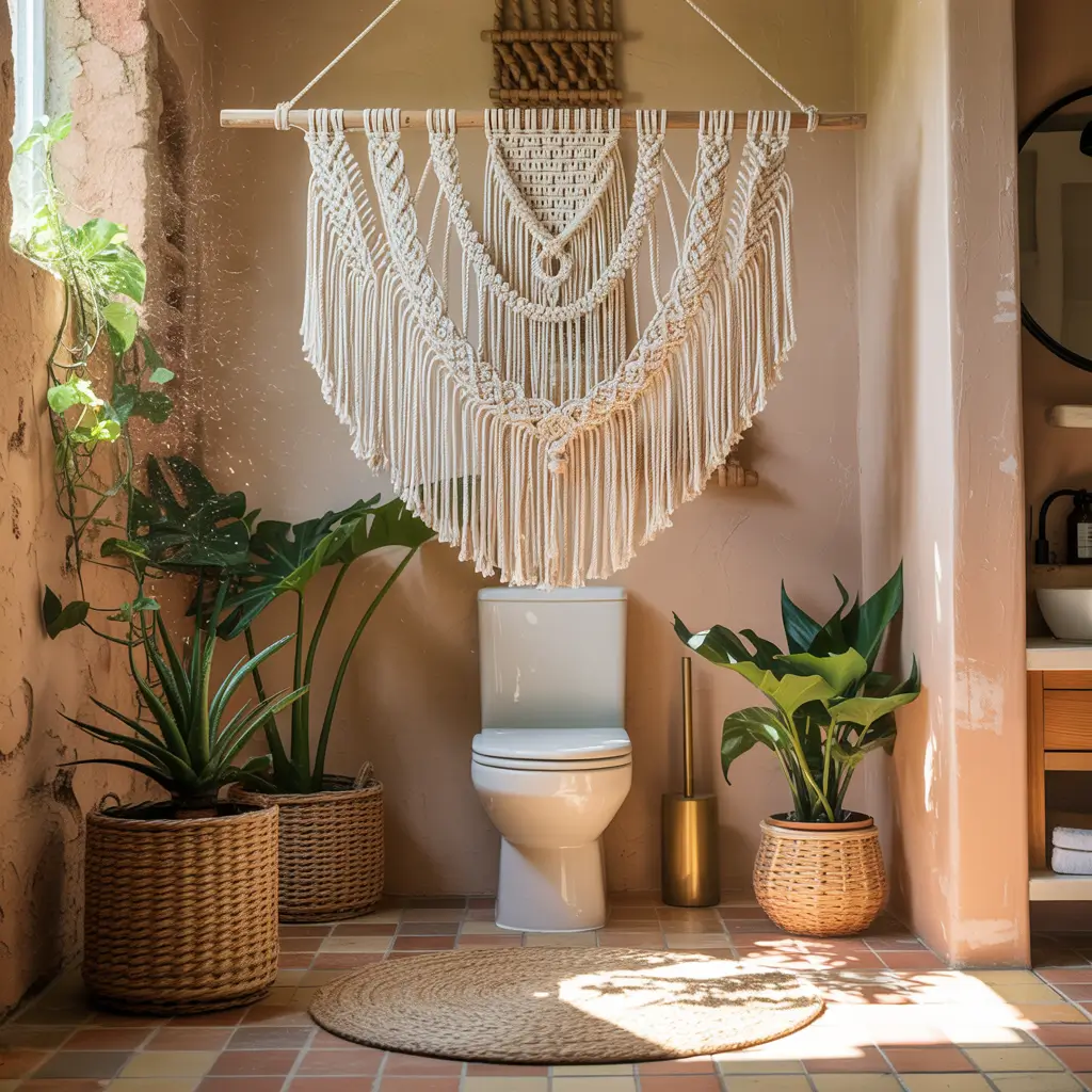 I hung a cream-colored macrame piece above my toilet, and it completely changed the vibe of that awkward wall space. It’s like adding a piece of art that also happens to be touchable (though maybe don’t touch it with wet hands).