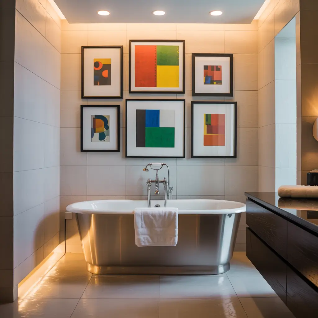 Creating a gallery wall in your bathroom might seem ambitious, but it’s actually one of the most versatile decor options out there. You can mix family photos, art prints, and even small mirrors for a personalized display that tells your story.